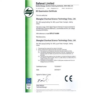 • Mini 放電等離子燒結爐 CE認證證書